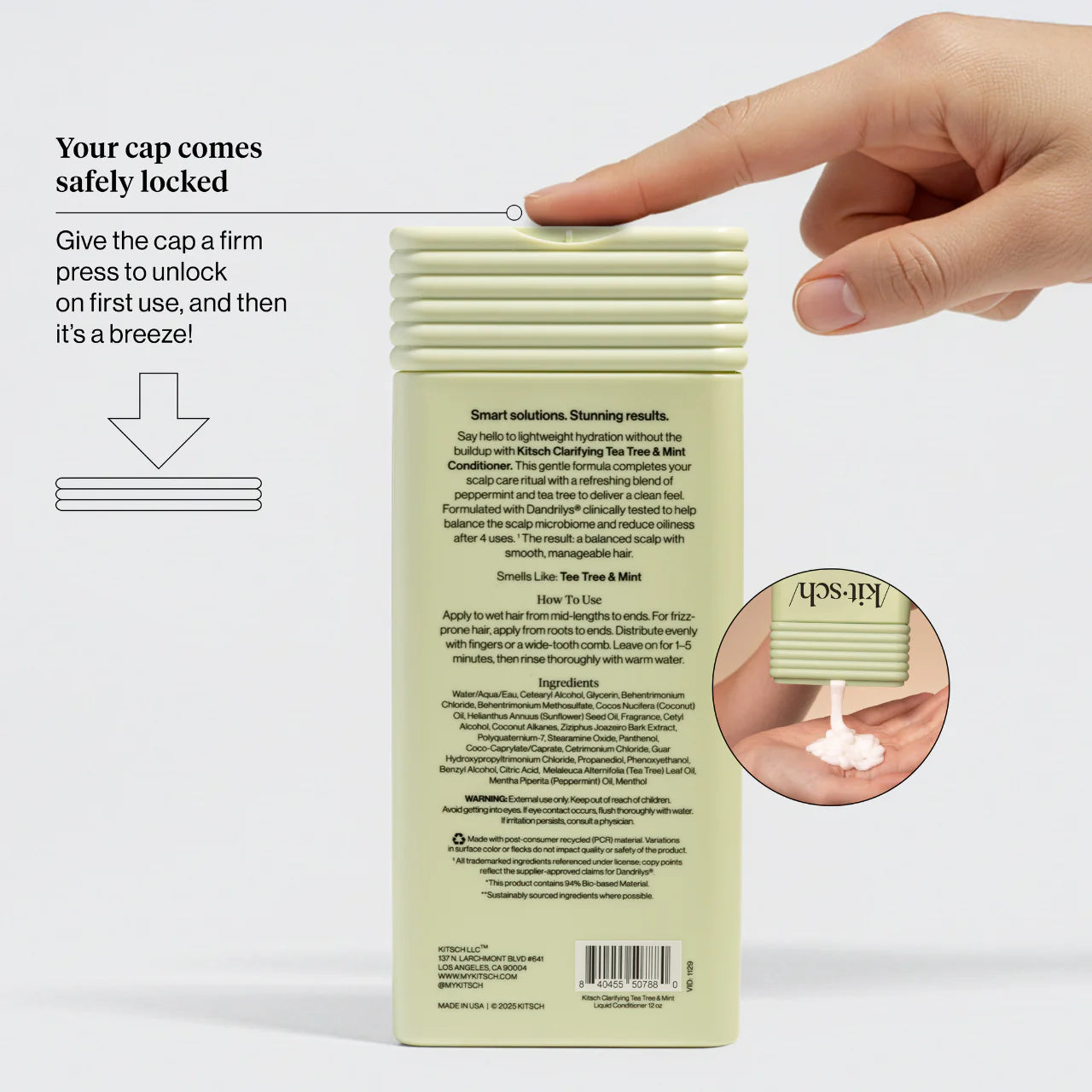 - Fully recyclable packaging and made with PCR (post-consumer recycled) material